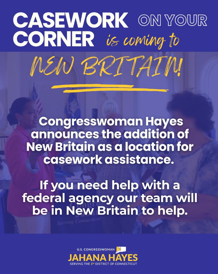 Congresswoman Jahana Hayes (D-5), New Britain’s member of the US House of Representatives, has announced the addition of New Britain as a featured location for her “Casework on your Corner” outreach initiative.